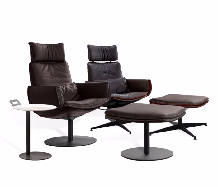 For the new CADO LOUNGE armchair edition model, the KFF design team has created a combination of aesthetics, innovation and dynamism. The upholstery of the armrests is folded over from the inside to the outside, creating a subtle accent at this point. An additional highlight is the choice of material contrast on the inside of this upholstery. A small but very subtle detail that can also be found on the headrest. The armchair offers indulgent comfort thanks to the optimum upholstery, the adjustable headrest and the optional rocking mechanism. A real treat for relaxing in your private rest area or for slowing down in a demanding office