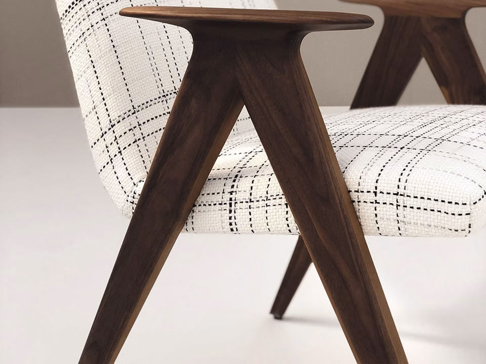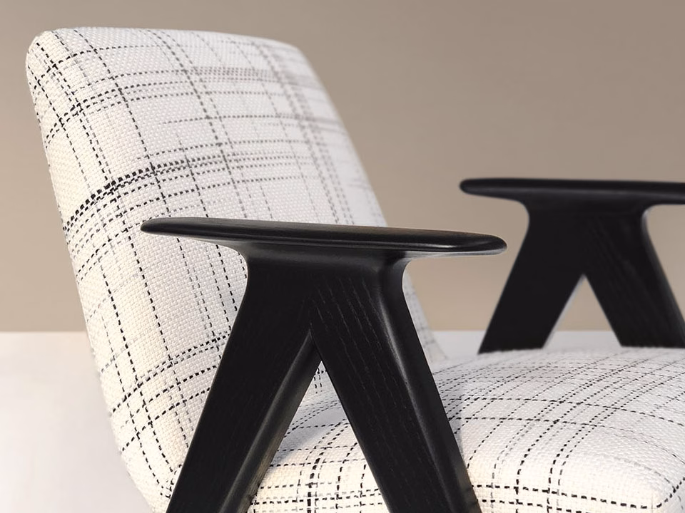 The visual character of Libera comes from its wooden frame, where the legs are connected with the arms in a fluid way. Using contemporary technology the wooden surfaces are now tactile and organic. Libera has also a surprising comfort achieved by the use of new elastic materials.