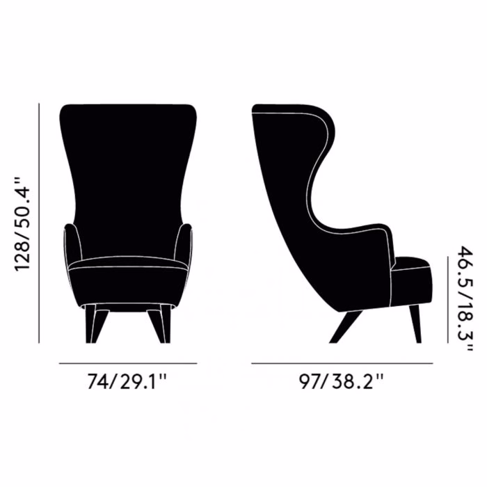 Inspired by traditional 17th Century Wingback and balloon-back archetypes, the chair was originally developed for Shoreditch House Members Club. Wingback’s recognisable silhouette is formed through a hard sculptural foam shell concealing a steel frame with modelled plywood base. It is then covered with cut foam and given a pocket-sprung seat cushion for maximum comfort. The collection is available in a wide range of colours and fabrics. Available with four leg options: Black, Natural, Chrome and Brass.