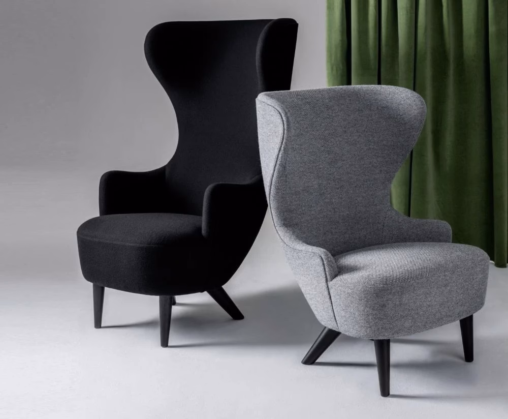 Wingback is Tom Dixon’s much appreciated armchair with its expressive sweeping curves that act as a sculptural intervention. This armchair is upholstered in Wool and available in a variety of colours and leg options. The wings provide convenient acoustic protection for mobile phone use and a headrest for quick snoozes.