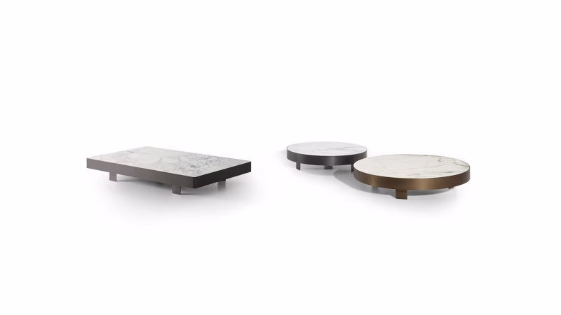The Jazz coffee tables are characterised by an imposing presence and the use of refined materials.