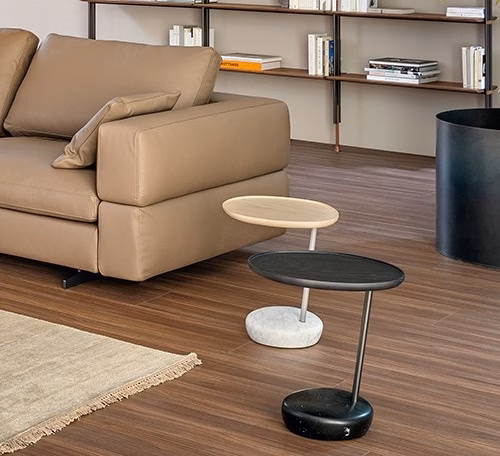 The Lupino collection of side tables is characterised by its use of a combination of different materials.