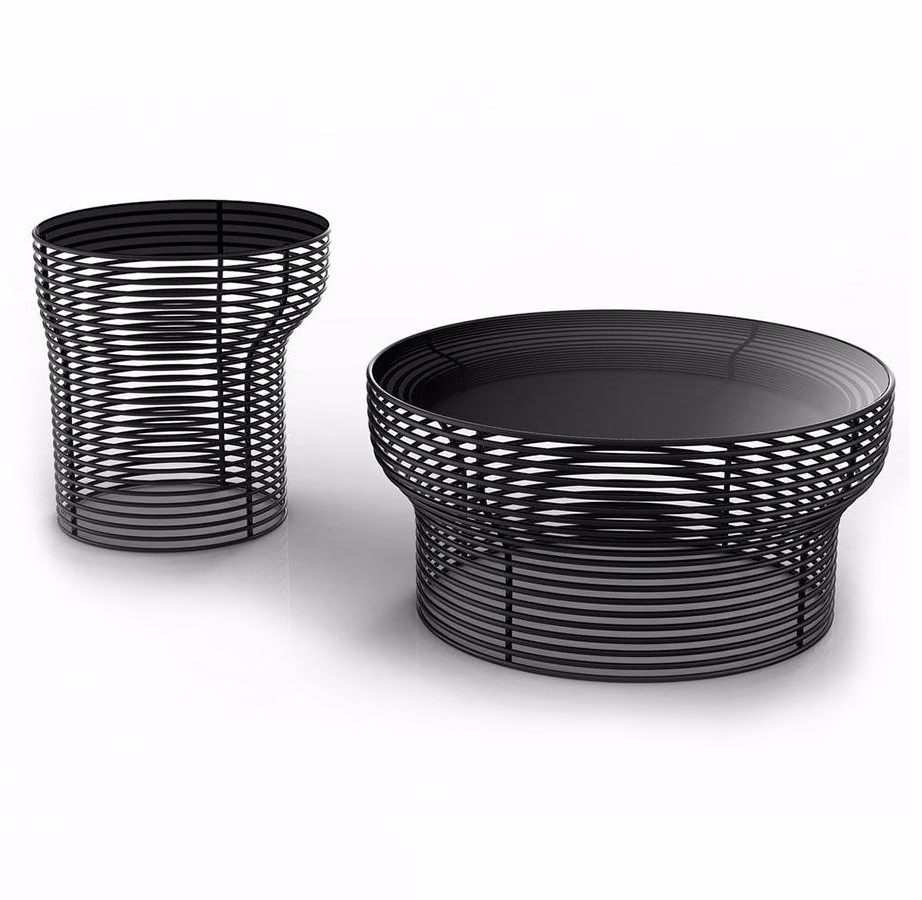 The steel tubes that form the base of Orion are inspired by the circular orbits of the stars during the earth’s rotation. A name and image with striking force, for a charming and evocative collection of coffee tables. With a design of absolute graphic imprint, the Orion coffee tables are composed of numerous curved and painted steel tubes and have the top in multiple