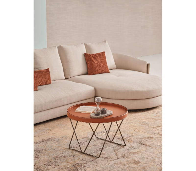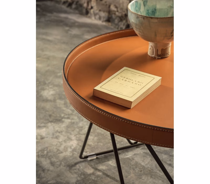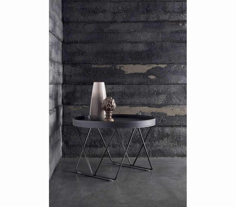 Coffee table with lacquered metal frame. Top in Hide Leather.