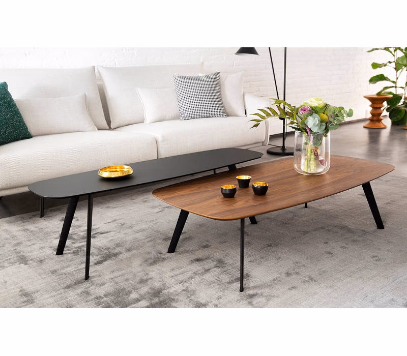 Solapa sofa tables have a silhouette evoques classical shapes, with new singular proportions, and two different heights to allow that they overlap.