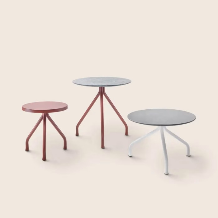 A family of very versatile tables, available in a number of finishes, shapes and sizes, is designed for a broad range of settings, from a city terrace to a home garden or vacation home. Its base is the table’s distinctive design feature and displays sinuous contoured stainless steel legs with epoxy powder-coat finish that support the top, which comes in versions with wooden slats or in a variety of types of stone suited to outdoor settings. The Academy Outdoor family also includes a series of coffee/side tables in various sizes that can be matched with all of the seating systems in the collection. If left unused for lengthy periods of time, it is recommended that the Academy Outdoor table be protected with its own cover to keep it in top condition and maintain its original appearance as long as possible. All of the components used in the Academy Outdoor table can be recycled.