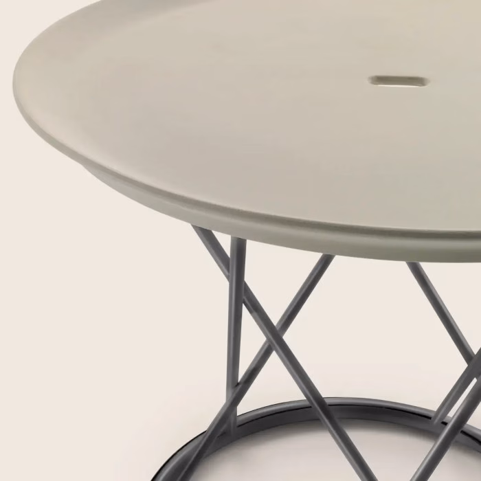 Clean lines and well-balanced proportions define the personality of the Torcello table, where geometric austerity meets impeccable materials. The epoxy powder-coated steel base, in a palette of sophisticated colors, designs a sturdy yet lightweight structure, emphasizing the dialog between form and function. The circular tops, available in glass, wood, or marble – the latter excluded from the Ø190 version – deliver different textural interpretations, balancing transparency and tactile surfaces. The coffee table tops are available only in the ceramic version, in a palette of sophisticated hues.
