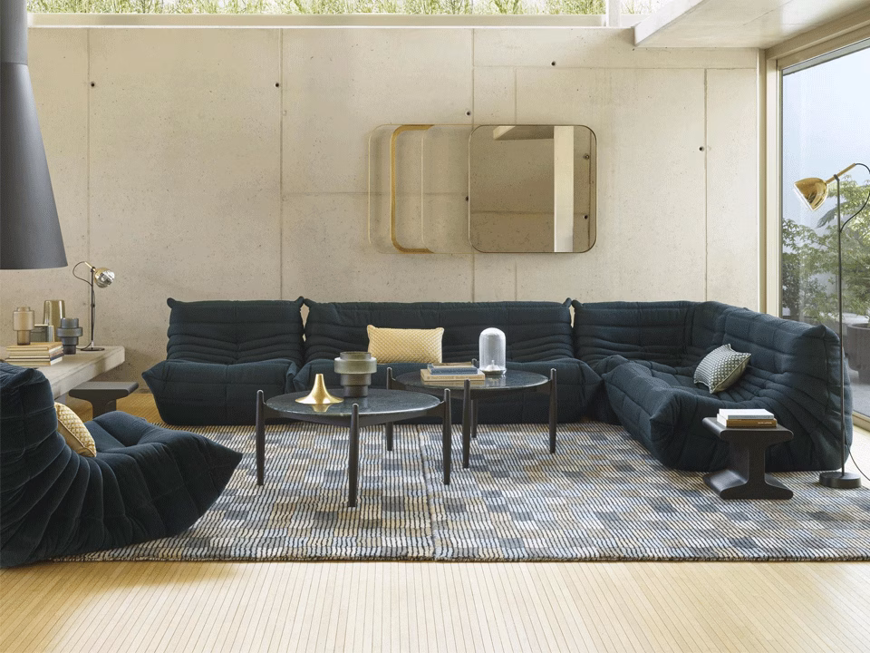 - Material: All foam construction. The basic shapes are made entirely of polyether foam. 5 different densities of foam are specified for a single seat. Seat covers are removable (by an upholsterer). Covers are generously quilted with polyester material.