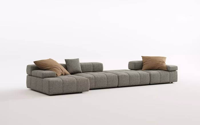 The Cobble Sofa is a design that brings the charm of historic European cobblestone streets right into your home. Its design, much like those age-old streets, boasts irregular yet captivating patterns that evoke a sense of timeless beauty and wanderlust. Its modular structure reflects a series of elements that can be customized to fit your unique living space. Whether you need a cozy corner for intimate conversations or a spacious seating arrangement for entertaining guests, the Cobble Sofa adapts to your needs with ease. Its flexibility ensures that it remains as practical as it is stylish, making it an ideal choice for modern homes where versatility is key. Whether dressed in a simple, classic fabric that whispers elegance or adorned with a vibrant, textured fabric that exudes personality, each variation of the Cobble Sofa tells a distinct tale of comfort and sophistication.