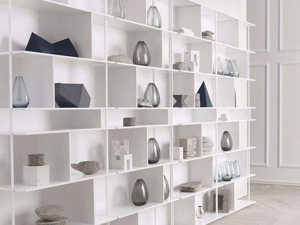 Structure is designed to give your ornaments and books air. The selection of light and solid materials, comprising lacquered steel and MDF, emphasises Structure’s pared-back quality. Both materials are durable, and Structure can therefore accommodate weighty encyclopedias and other collected works without any problem.