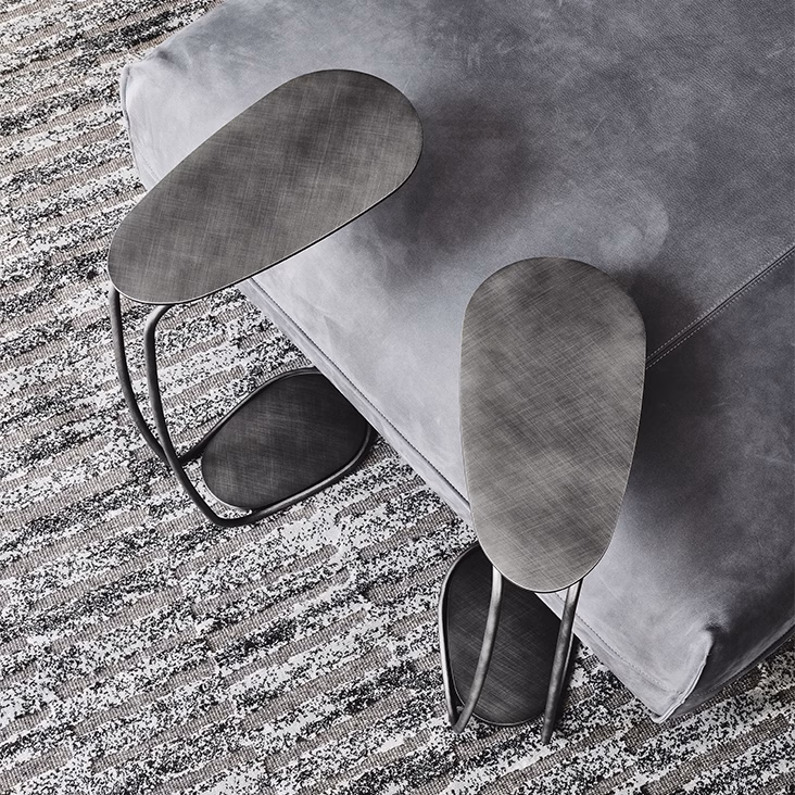 Side table with frame and top in titanium (GFM11) embossed lacquered steel, Brushed Bronze or Brushed Grey.