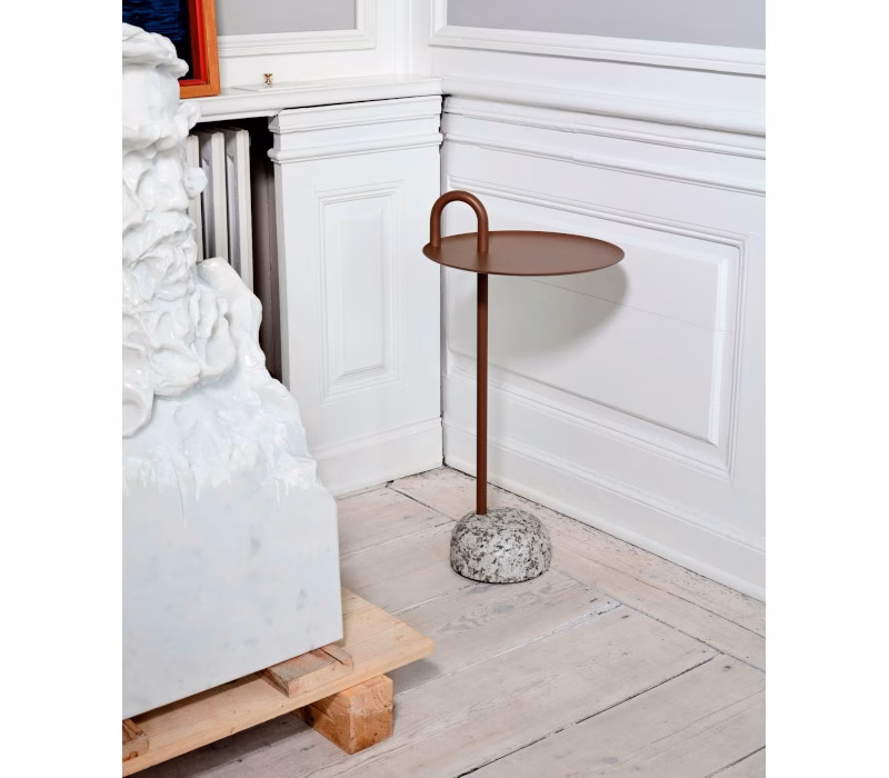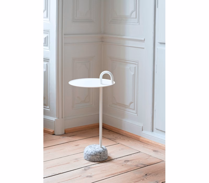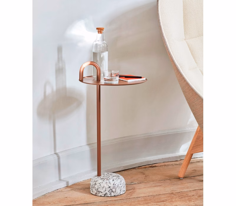Shane Schneck’s Bowler Table is a compact side table that is ideal for small spaces. The single tube that extends upwards creates a defined profile, which doubles as a functional handle too. The stem, handle and tray are made in powder coated steel, with a solid granite base that provides stability, yet it is still lightweight enough to move around. Bowler comes flat packed and is easy to assemble, making it suitable for all kinds of domestic and corporate environments.