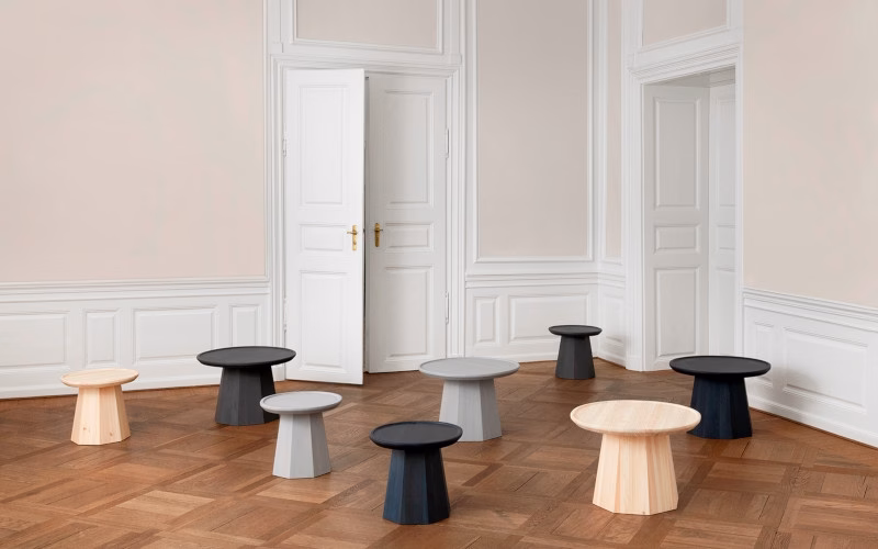 There is something both earthily Nordic and expressively avant-garde about Normann Copenhagen’s collection of small tables that go by the name Pine. The tables are made from solid pine in a characterful and sculptural design.