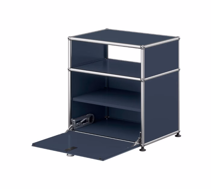 A bedroom is a place to relax, to recharge – your sanctuary. With its sheer simplicity, USM design helps you to ease your mind – offering enough variations to create your own personal sense of calm. No interior furnishings are complete without side tables. With one drop-down door and one divider shelf. Arrives fully assembled