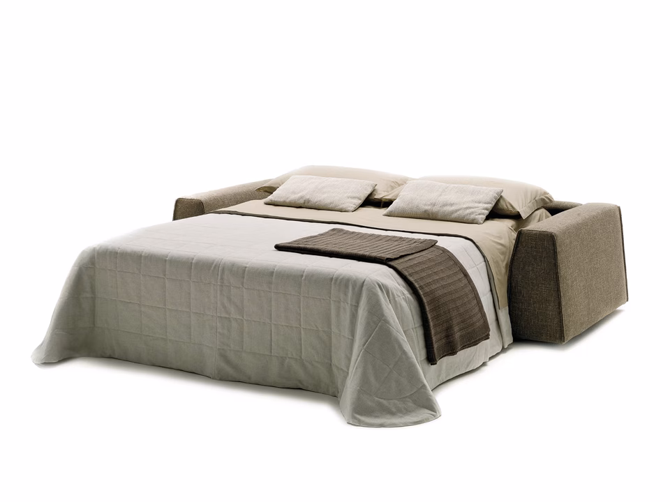 Sitting or sleeping has never been more comfortable with the Parker: a wooden slats bed base with a large choice of different mattresses, beautiful design and extreme seating comfort. The seating height is only 42 cm. By simply rotating the back, without removing any of the cushions, Parker converts into a conventional bed with a 200 cm. mattress. The cover is completely removable and washable according to the fabric chosen. Parker is also available as a sofa and can be completely disassembled for easy delivery..