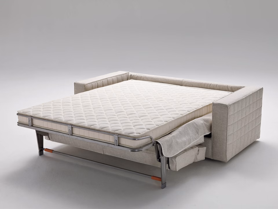 Grand Lit retains simplicity of line, with an original approach to the detailing of its quilted covering and adjustable backrest. By simply rotating the back, without removing any of the cushions, Grand Lit converts into a conventional bed with a 200 cm. mattress. The cover is completely removable and washable according to the fabric chosen. Grand Lit is also available as a sofa and can be completely disassembled for easy delivery.