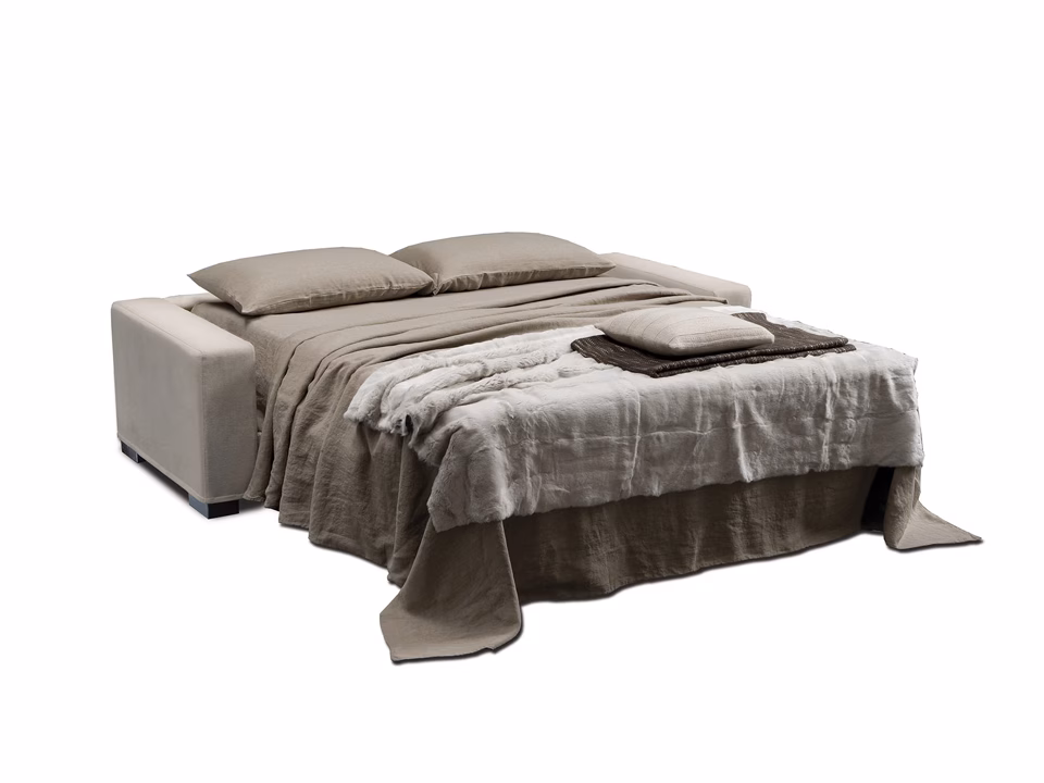 All the units in the Duke modular sofa bed with Lampolet mechanism have been specially designed to make full advantage of the space available. The units offer a wide range of possible variations for both fix and convertible models; they are all interchangeable and can be easily put back together. By simply rotating the back and without removing any of the cushions, Duke converts into a regular bed with a 14 cm thick mattress, which is 200 cm long. The removable cover is washable according to the fabric selected; it is a disassembling sofa bed for easy delivery.