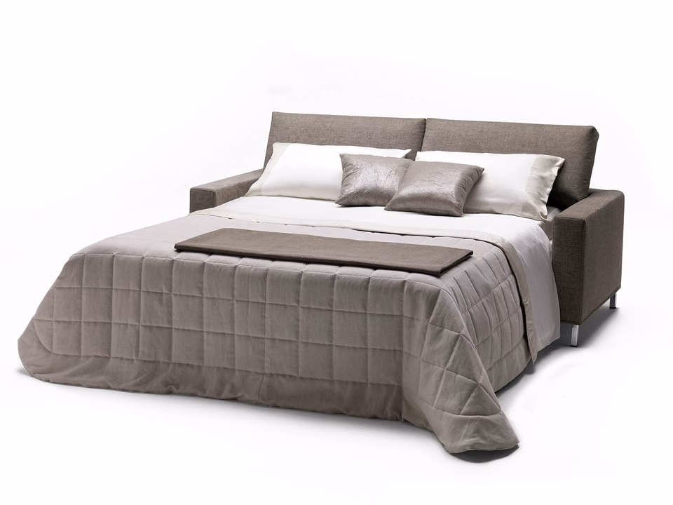 Matrix is a sofa whose stylish bring sophistication to a modern setting. The cover is completely removable and washable according to the fabric chosen. By simply rotating the back, without removing any of the cushions, Matrix converts into a conventional bed with a 200 cm. long mattress.