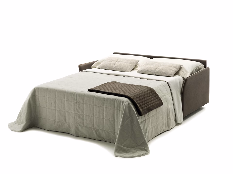 Stan is a sofa whose style brings sophistication to all environments. The cover is completely removable and washable according to the fabric chosen. By simply rotating the back, without removing any of the cushions, Stan converts into a conventional bed with a 200 cm. mattress.