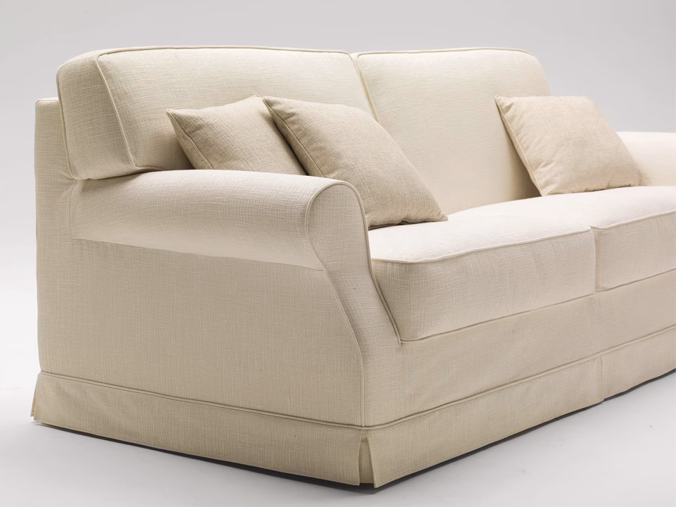Elegant lines combined with a touch of nostalgia make Gordon the classic family sofa with its timeless design. Gordon features feather seat and back, giving a touch of style. By simply rotating the back, without removing any of the cushions, it converts into a conventional bed with a 14 cm. high and 210 cm. long inner spring mattress. Gordon is available in all sizes with or without the bed mechanism.
