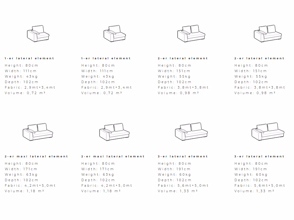 - See picture gallery for configurations and dimensions.