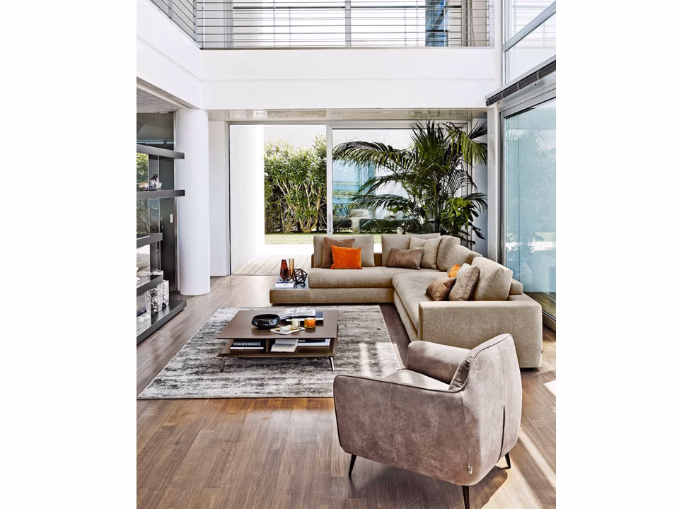 With its sober, elegant design it gives your living room a chic, refined atmosphere. A sofa with extremely snug, soft cushions ensuring maximum comfort, Bijoux can be fitted with a headrest that comes in 5 sizes adapted to the size of the cushions, in order to support a more vertical, correct posture for reading and relaxing.
