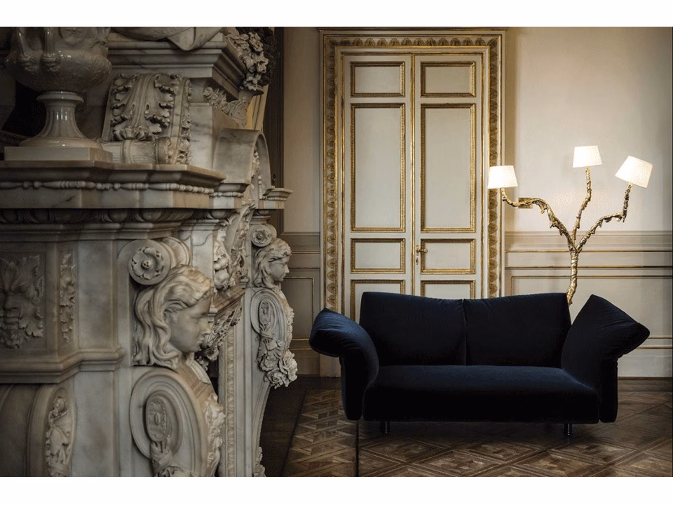 It is a sofa contained in size. It is “flexible” because, thanks to the “smart” cushion, it can shape itself to all possible uses. It is adaptable, because it consists of several sections. It is cosy, elegant, sober and essential. It’s possible configurations are based on simple geometry. Linear sofa for two, three, or four that enables angular solutions. Curve seats to draw half moons or semicircles but also elongated seats, single or double, for compositions with chaise longue