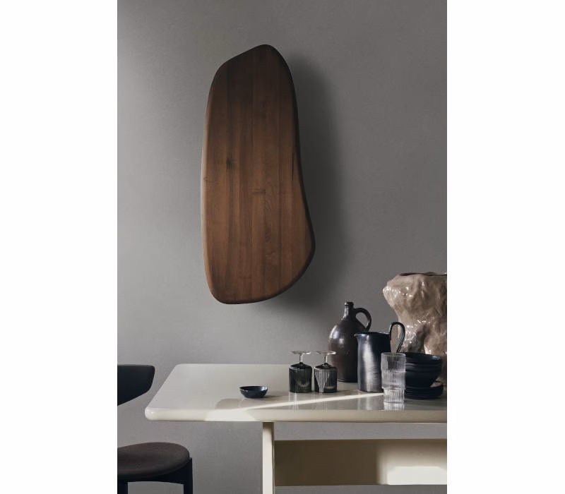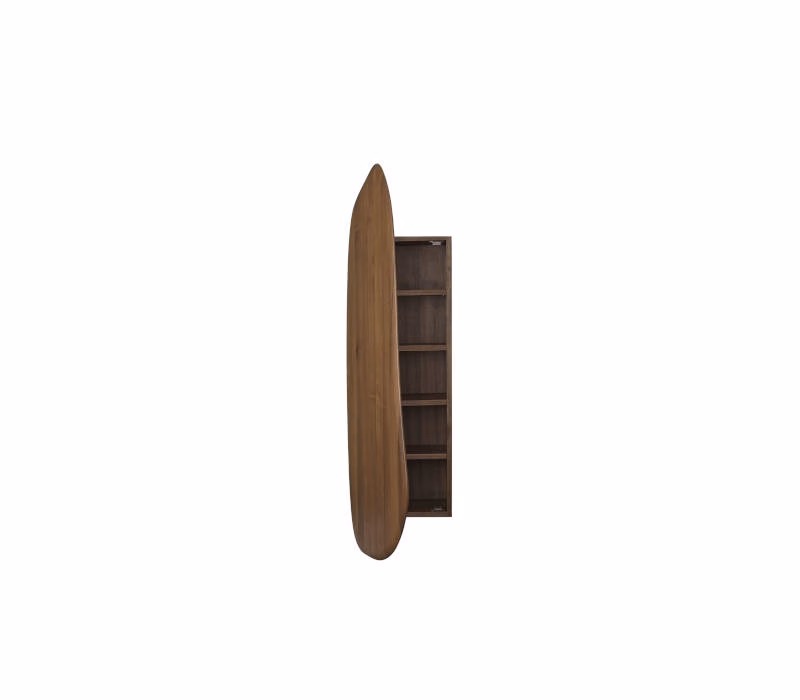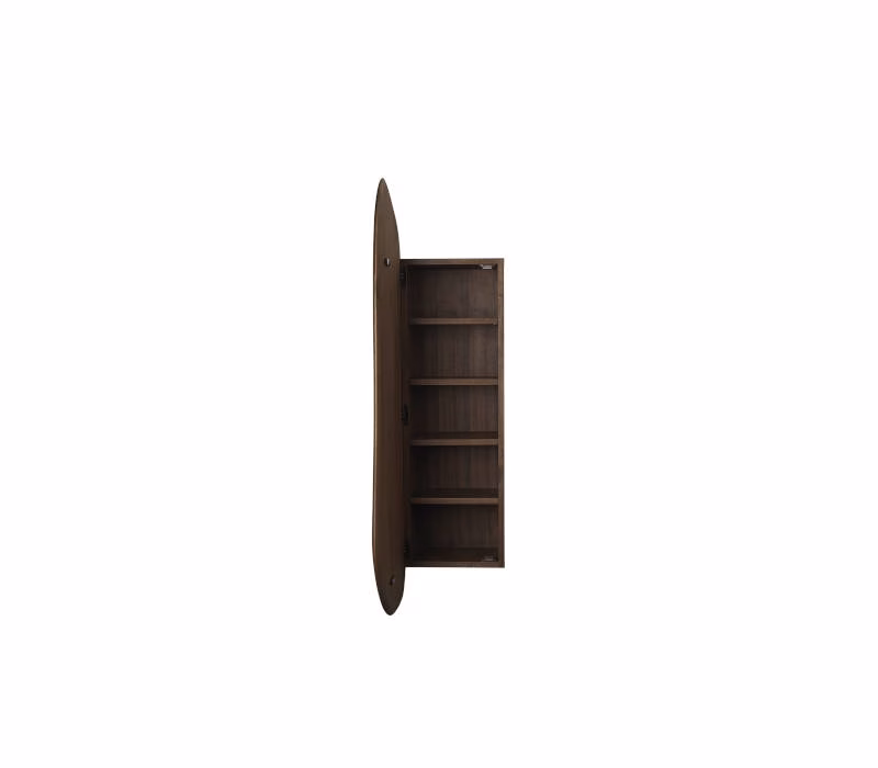 Made from solid FSC™ certified European Walnut, the Feve Wall Cabinet has an organic and warm expression that will suit any space. As a reference to the distinctive shape of the cabinet door, which appears to be floating when hung on the wall, the Feve Wall Cabinet gets its name from the French word for bean. The slim, decorative cabinet presents an ideal storage solution for precious treasures and can be used throughout the home, from storing jewellery in the bedroom to glasses or small bowls in the dining room.