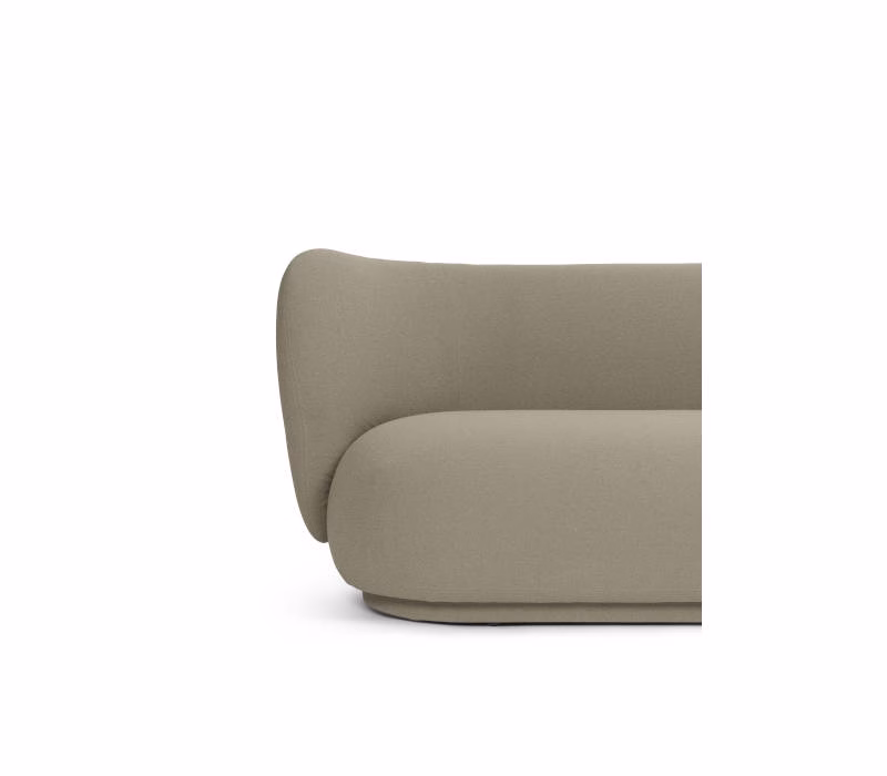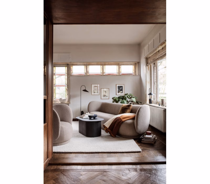 The Rico series welcomes curves and volumes into a classic design defined by soft lines and an embracing expression. Contrasting the sturdiness of the frame, the armchair has an upholstery of timeless, yet easeful wool bouclé fabric, which is woven of uneven yarn to attain the rich, loopy texture of the surface. The curvaceous nature of the series adds a modern union of comfort and elegance to any room and makes you feel drawn into its motherly embrace.