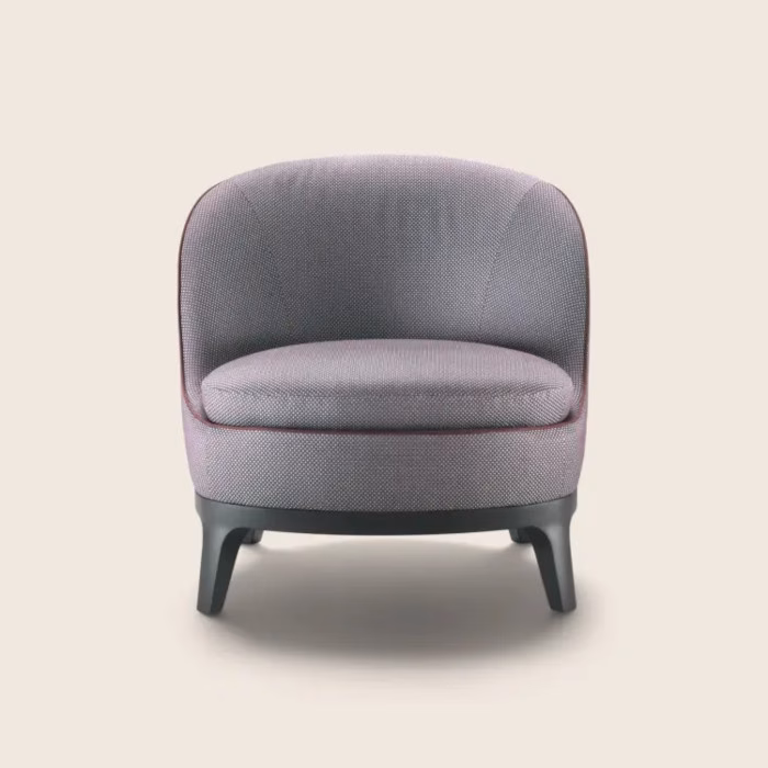 The Dragonfly collection comprises armchairs, sofas and daybeds crafted to furnish both residential and hospitality spaces – like lobbies, lounges, waiting rooms and suites – with charm and elegance. Featuring pared-down proportions and a high seat back, the Dragonfly armchair offers excellent back support. It sits on an elegant solid wood base that can be stained in a range of sophisticated shades. The slender scale and graceful lines that set the Dragonfly armchair apart are emphasized by refined grosgrain piping that lends a finely-finished touch to the upholstery and speaks to the time-tested artisan skill that goes into its making.