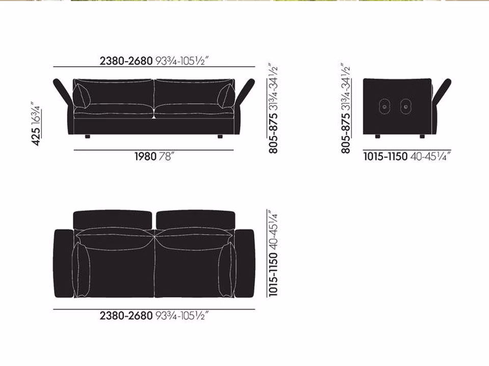 The extraordinary comfort of the variously sized Mariposa sofas derives from their pleasantly soft upholstery and the adjustment mechanism in the arm and backrest elements. The expansive 3-seater provides plenty of space and invites users to stretch out lengthwise, using the adjustable armrests as a back or neck rest to relax and read or take a nap.