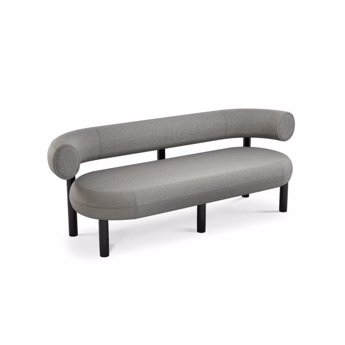 Designed to hug the body and allowing for multiple sitting positions, this sofa is upholstered in Wool. Fat is made from moulded foam with a metal leg launching in high gloss black lacquer and made to order upholstery. Manufactured in Europe, hand finished and upholstered by experienced craftsmen.