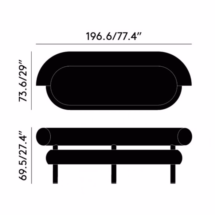 W 196.6 x D 73.6 x H 69.5 cm