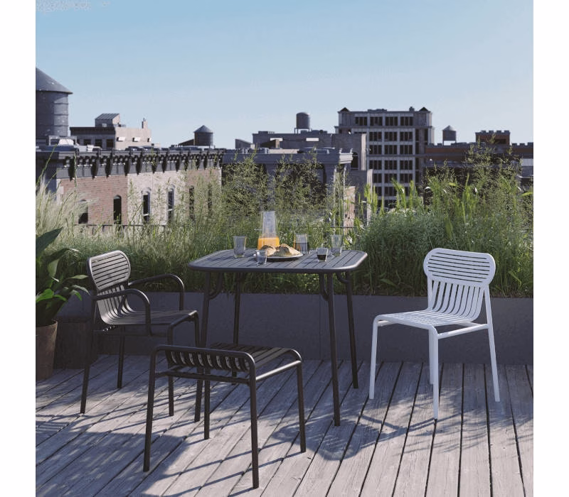 Whether they include armrests or not, Week-end designer garden chairs are a perfect match for both the square and rectangular tables of the same range. For added comfort, the range also features seat cushions that come in two sizes and two colours. These designer garden chairs can be stacked 6 high and come with a 5-year functional warranty.