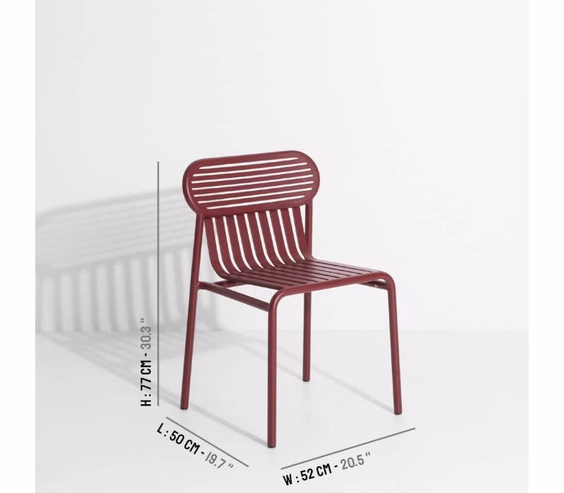 This designer aluminium garden chair has been designed to last a long time: rust resistant and reinforced slats. Its aluminium structure gives it strength and lightness. Its matt finish in powder coating is VOC-free.