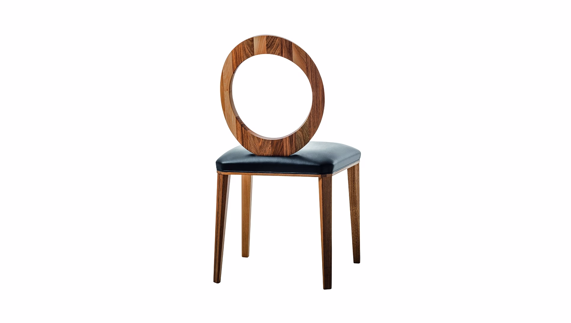 This innovative Gemma dining chair is the brainchild of Italian furniture designer Enzo Berti. His passion for shape is evident in the creation’s strikingly simple backrest which features a circular cut out. The design is enriched by exquisite materials, from its walnut wood frame to its sumptuous leather seat.Dining in style is a must, but comfort is equally important. The unique backrest, made from curved wood slats, is fixed to the seat with a hidden metal plate, providing a solid foundation so you can sit back and relax.