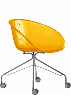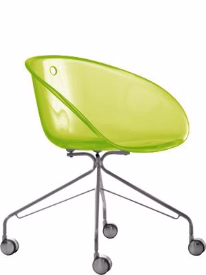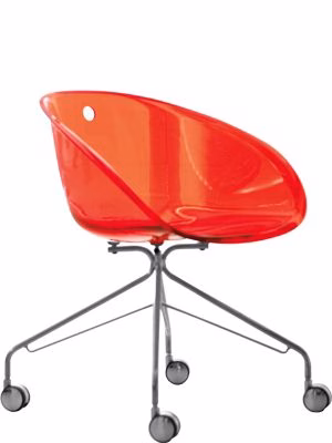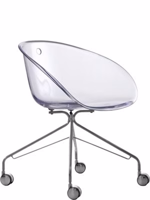 Gliss armchair, transparent acrylic shell and frame with castors.