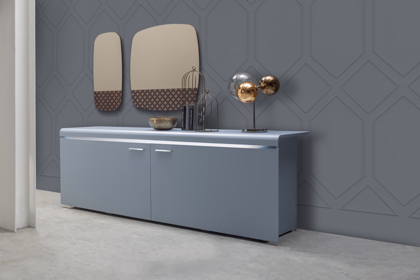 A neat and linear sideboard, with regular doors that follow its basic drawing: Goya represent soundness, elegance and willing to go back to simple and even shapes. A more contemporary note is given by the optionals: a LED light on the top. In varius colours.