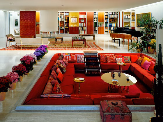 The Graphic Print Pillows by Alexander Girard bring abstract graphic patterns and expressive figurative motifs to life, providing striking accents for a diverse range of interior styles.