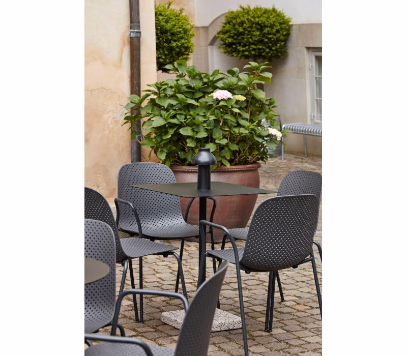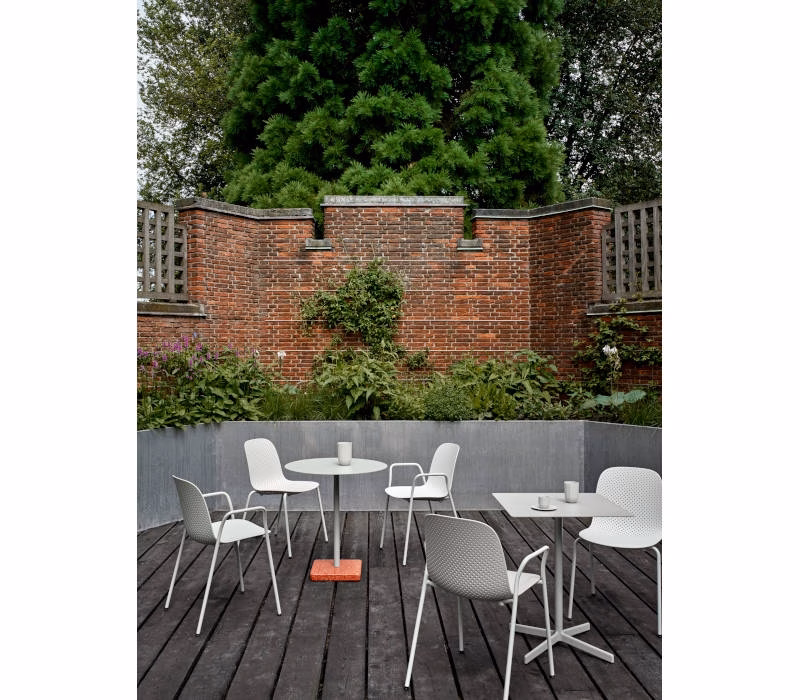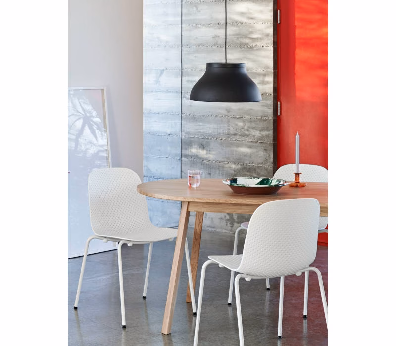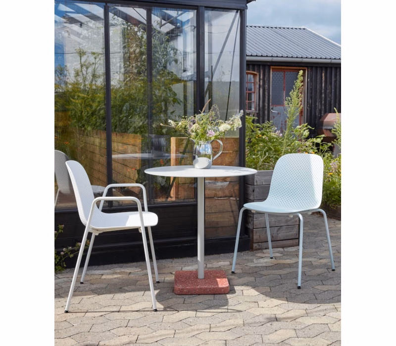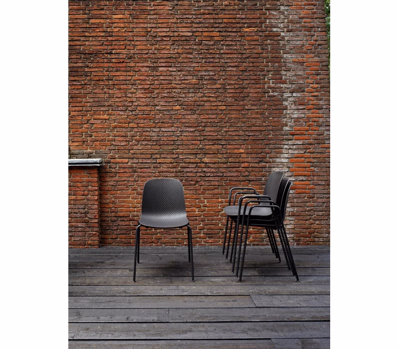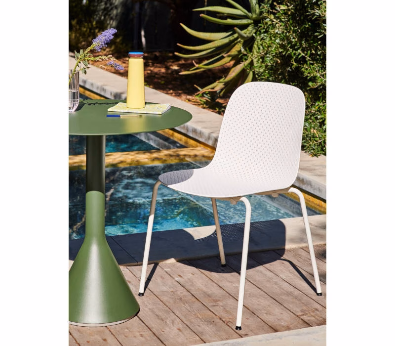 HAY’s 13Eighty chair designed by Dutch designers Scholten & Baijings is aptly named after the number of tiny holes in the moulded polypropylene shell. These perforations create a characteristic aesthetic, where transparency and a play of light and shadows add to the chair’s expression, while the variations in the sizes of the holes bring a sense of movement to the visual appearance. They also have a functional use in draining rainwater off when the chairs are used outdoors. Available with or without armrests in a stackable design that features steel legs with a weather-resistant coating to make it suitable for outdoor use.