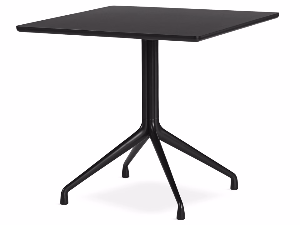 - Material: 25 mm square tabletop in plywood with linoleum or laminate. White laminate with raw plywood edge. Black linoleum with black painted plywood edge. Rounded edge. Frame in cast and extruded aluminium.