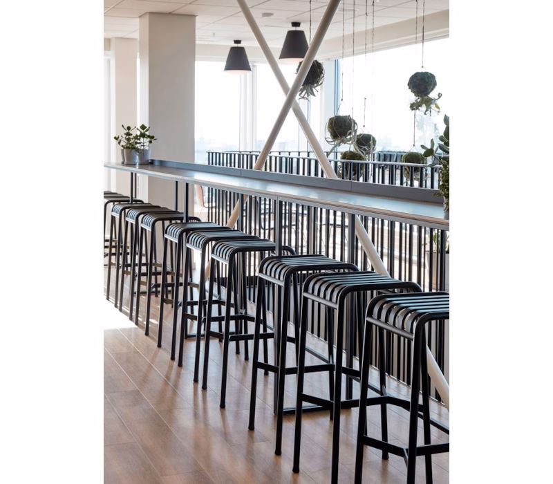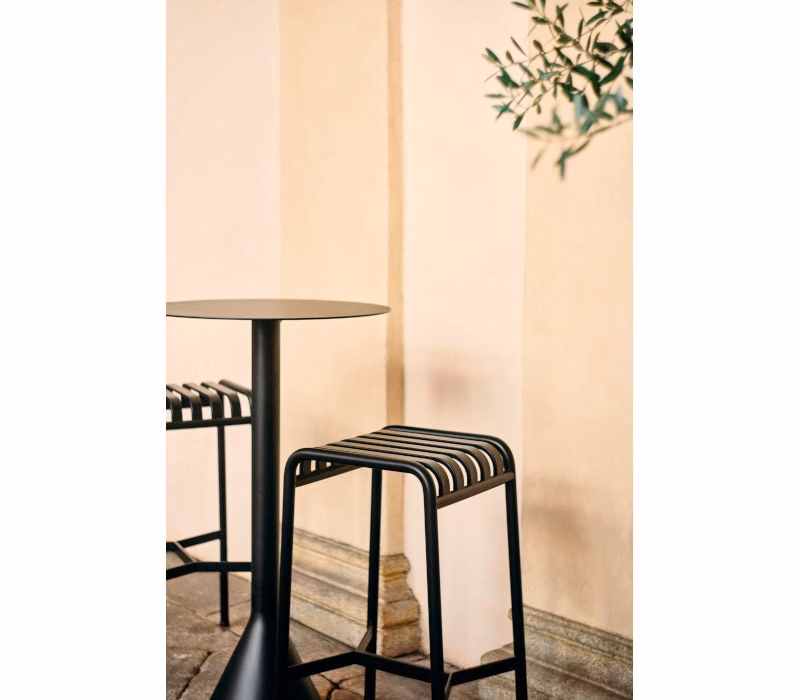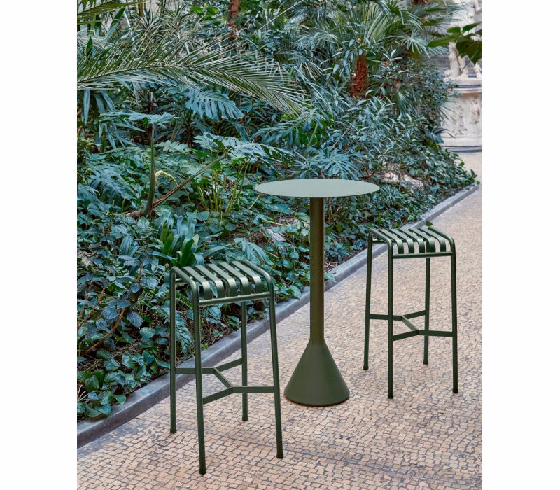 Designed by French brothers Ronan and Erwan Bouroullec, Palissade is a collection of outdoor furniture for HAY in powder coated or hot galvanised steel. United by a common principle of symmetrical geometry, the Palissade collection is engineered to reproduce the same visual simplicity and core strength throughout. Designed in colour and form to integrate effortlessly into a natural landscape or urban setting, Palissade is intended to be used over a longer period of time and become more beautiful over the years. The Hay Palissade Outdoor Bar Stool is suited to a wide variety of environments, from cafés and restaurants to gardens, terraces and balconies.