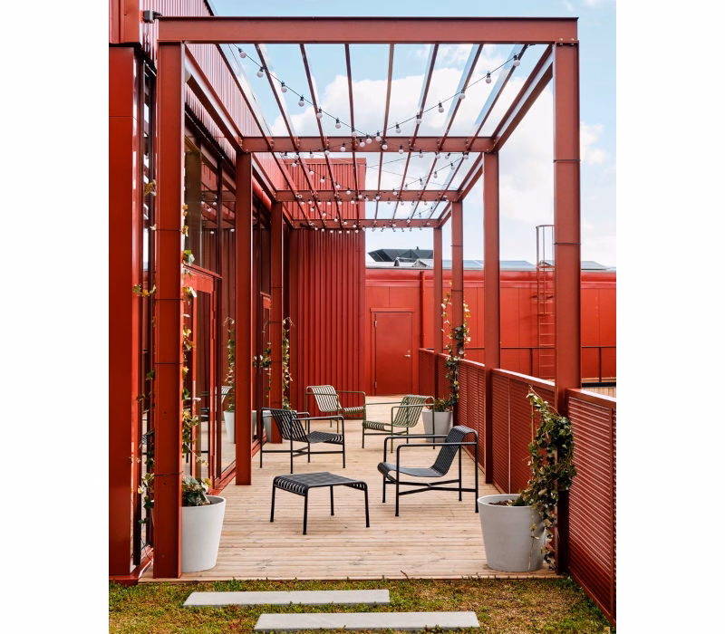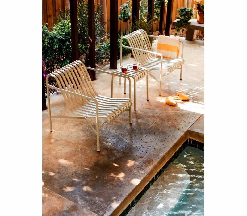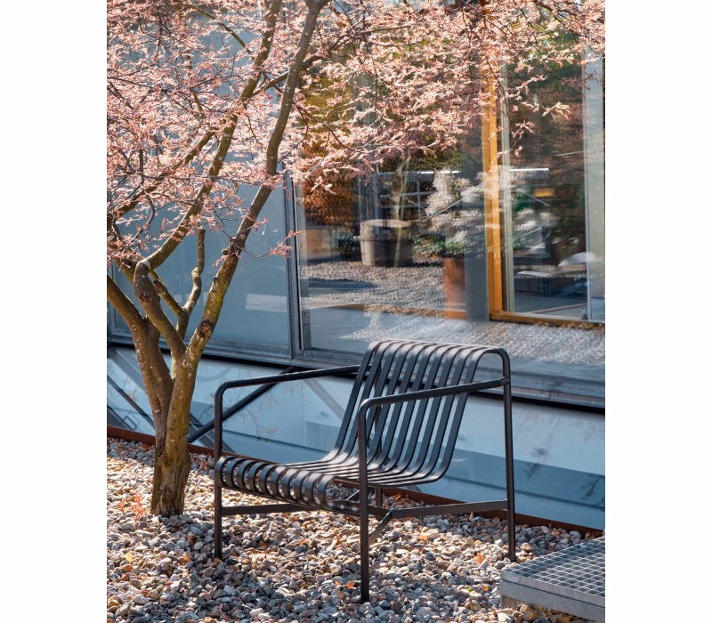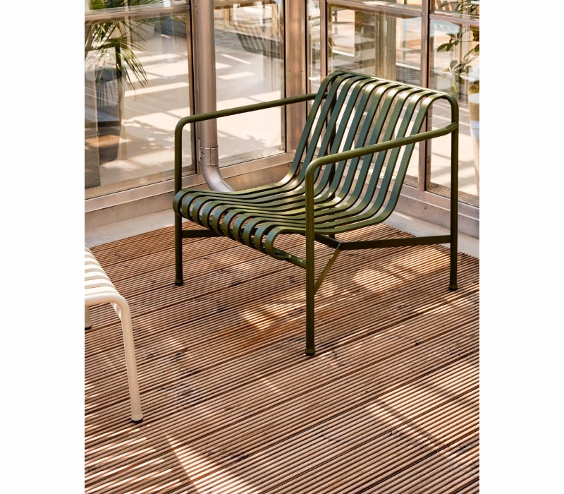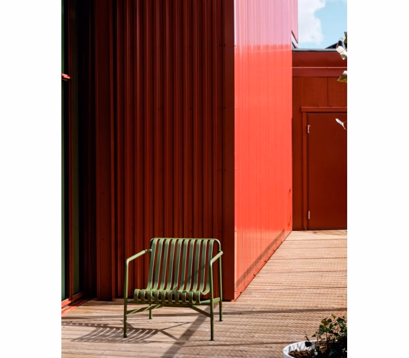 Designed by French brothers Ronan and Erwan Bouroullec, Palissade is a collection of outdoor furniture for HAY in powder coated or hot galvanised steel. United by a common principle of symmetrical geometry, the Palissade collection is engineered to reproduce the same visual simplicity and core strength throughout. Designed in colour and form to integrate effortlessly into a natural landscape or urban setting, Palissade is intended to be used over a longer period of time and become more beautiful over the years. The Hay Palissade Outdoor Lounge Chair Low is suited to a wide variety of environments, from cafés and restaurants to gardens, terraces and balconies.