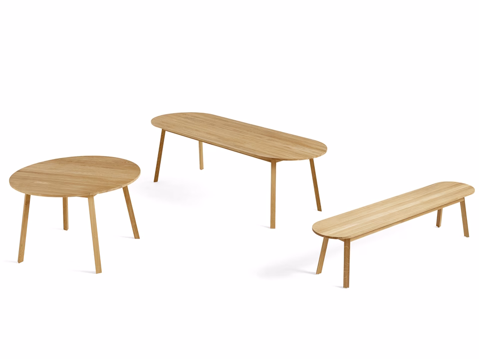 Motivated by the desire to create more space around a circular table, Simon Jones designed the Triangle leg table and bench series. The rectangular ends of the tabletop and bench have been rounded, creating a sociable setting that maximises seating numbers around the table. Crafted in solid oak with an oiled, soaped or clear lacquer finish, this versatile series is suitable for a wide range of private and public dining or office environments.