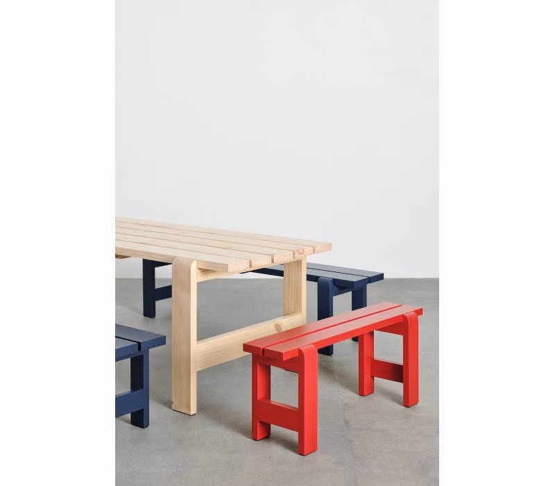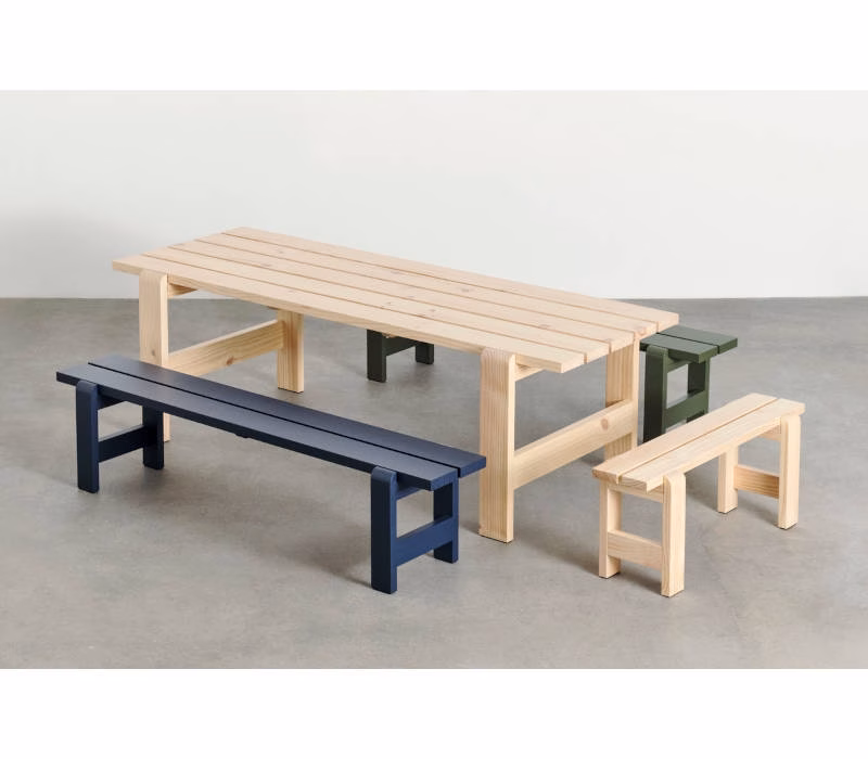 Hannes & Fritz’s Weekday Table was inspired by the idea of bringing people together and communal dining experiences. Combining a solid, robust presence with softly rounded joints, the Weekday Table conveys a sense of warmth and familiarity that invites shared mealtimes and a social atmosphere. Featuring the same simple construction as the classic picnic table, it is made in strong, durable pine planks that will patinate beautifully and last for many years to come. The Weekday Table’s strong yet universally appealing character combined with its water-based weather-resistant surface treatment makes it suitable for outside use in a wide range of settings, from cafés and public parks to private or shared gardens. Available in different sizes in solid pine in various finishes and colours.
