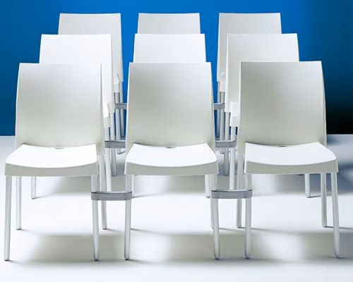 | Ice chair, polypropylene shell available in 9 colours and anodized aluminium tube legs. Light and stackable, it is suitable also for outdoor use. |