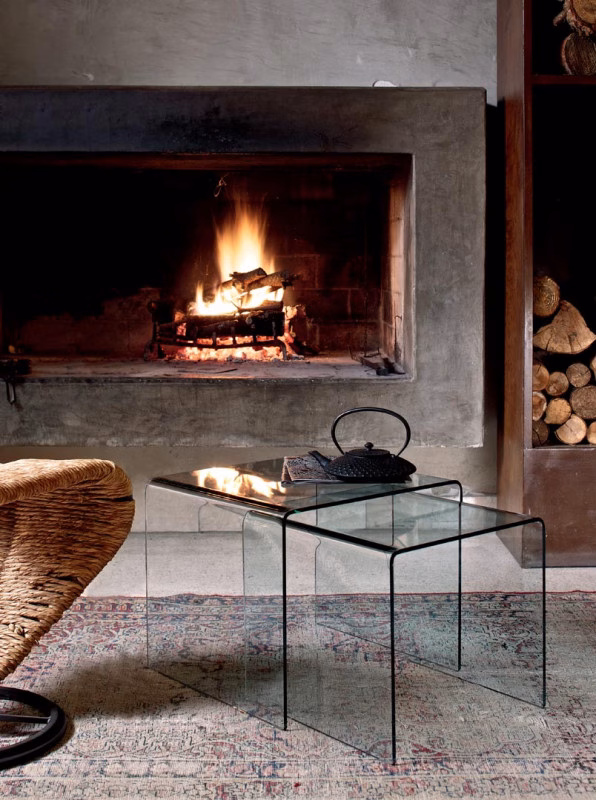 Coffee table in curved glass.