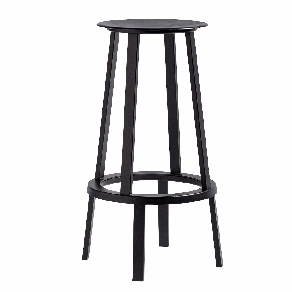 Positioned on a bearing mechanism, the rotating stool is both a practical and stylish addition to an interior space. With a simple geometric design, defined by a rounded seat and a slender frame, the robust and stylish stool, crafted from durable aluminium, is a true embodiment of simple timeless design. Perfect for pairing with a breakfast bar or high bar space, the Revolver Bar Stool is part of the Hay Revolver family.