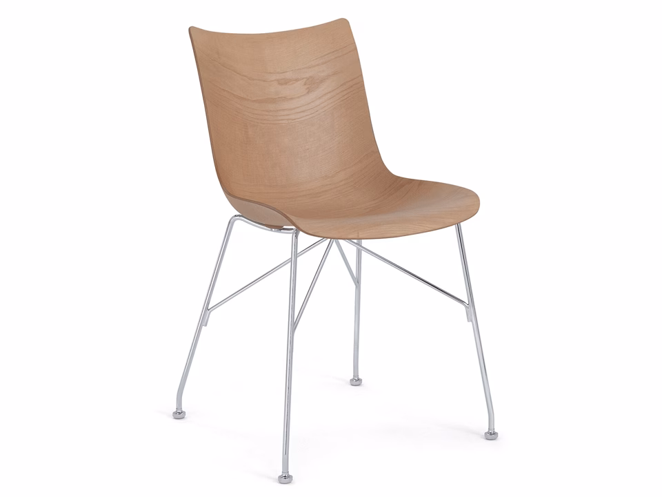 P/Wood is the chair from the Smart Wood collection which, thanks to its simple and rounded lines, fits into any environment. Using patented technology, the wood is worked with a mould designed to bring the curvature of the panel to the very edges, creating a seat with sinuous roundness.
