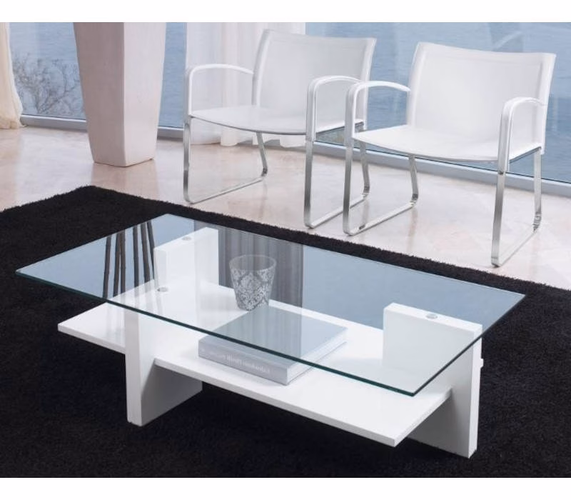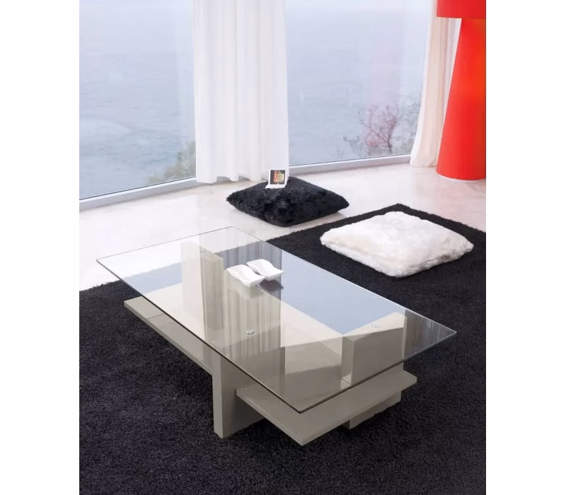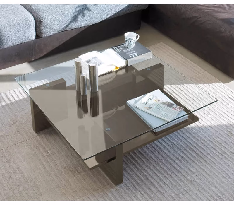 Small table with wooden or lacquered wood frame. Extralight tempered clear glass top (10 mm).